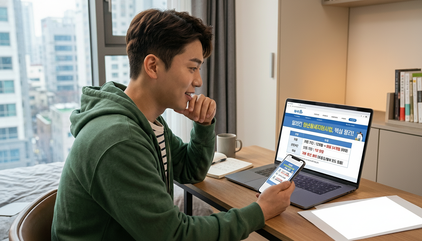 달라진 청년월세지원사업 내용을 확인하는 청년의 모습