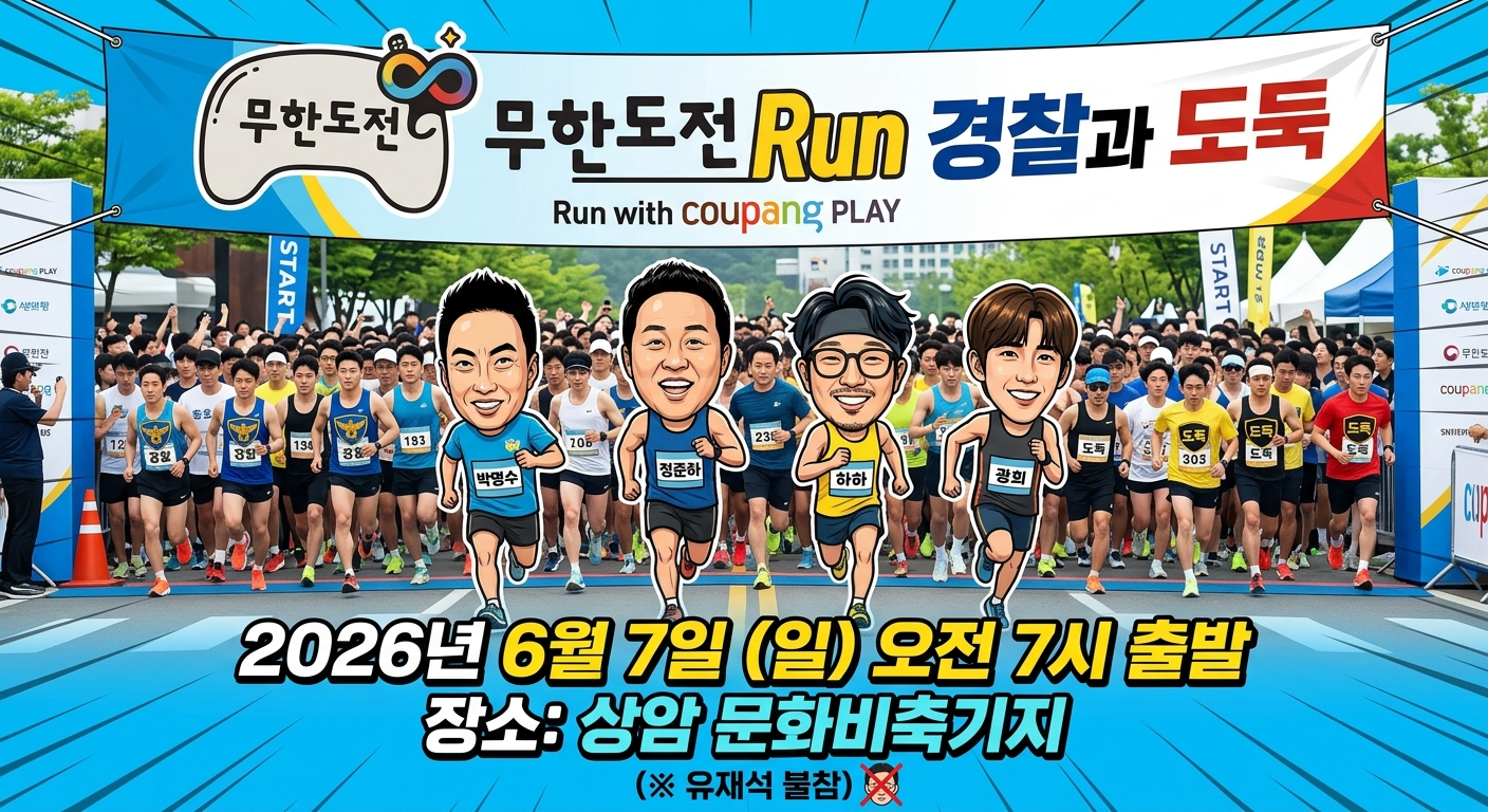 2026년, 무한도전의 레전드 특집을 오프라인에서 만날 수 있는 특별한 기회가 찾아옵니다. 무한도전 Run with 쿠팡플레이는 과거 시청자들에게 큰 사랑을 받았던 '경찰과 도둑' 테마를 바탕으로 진행되는 마라톤 대회입니다. 이번 대회의 주요 일정과 예매 정보를 구조화하여 안내해 드립니다.